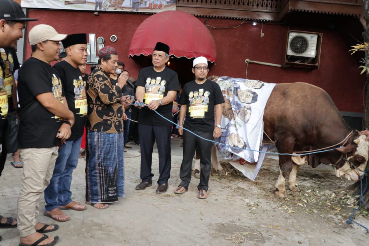 SEMARTARA – Momen Idhul Adha dimanfatkan bagi sebagian masyarakat untuk menyisihkan rezekinya untuk berkurban, hal tersebut pun dimanfaatkan wali band. Mereka pun berkurban sebanyak 5 ekor sapi dan 17 kambing bertempat di Basecamp band Wali di Jalan Masjid Al-Latief No 99, RT 6/3, Kademangan,Setu, Kota Tangsel, Minggu (11/8).