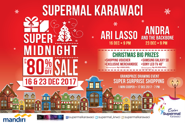 SEMARTARA, Tangerang (14/12) – Program belanja hemat sampai tengah malam kembali hadir di Supermal Karawaci. Program ini dikemas dalam Christmas Super Midnight Sale, yang digelar pada tanggal 16 dan 23 Desember 2017 mulai pkl 20.00 WIB sampai dengan tengah malam.