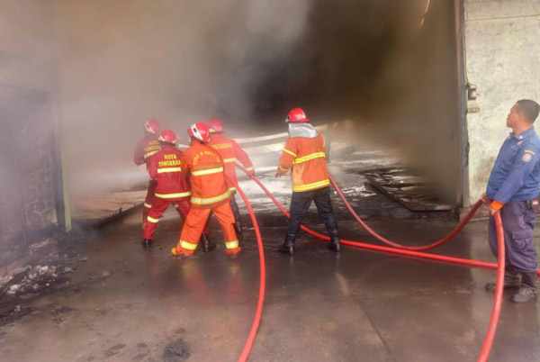“Kejadian pas karyawan lagi istirahat. Saya dengar ada suara gemericik api dari dalam gudang. Pas dilihat, api sudah besar,” katanya.