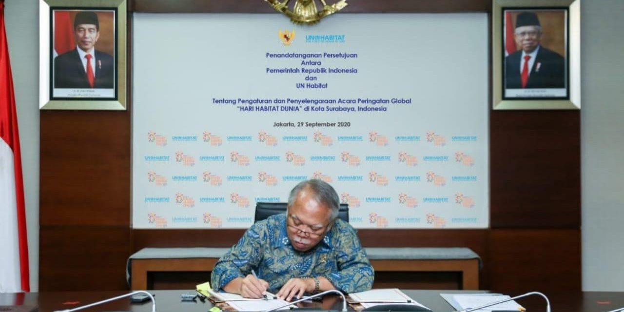 Di tengah suasana Pandemi COVID-19, penandatanganan naskah tersebut dilakukan secara virtual pada waktu bersamaan namun pada tempat yang berbeda, tanpa mengurangi esensi dari kata sepakat dan aspek legal dari naskah persetujuan itu sendiri. Di dalam perjanjian tersebut disepakati bahwa kegiatan Peringatan Puncak Hari Habitat Dunia Internasional Tahun 2020/The Global Observance of World Habitat Day 2020 akan diselenggarakan di Surabaya pada 5 dan 6 Oktober 2020.