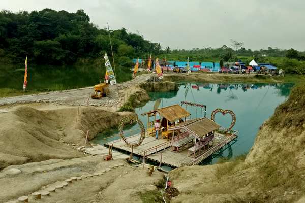 “Memang kawasan ini sudah lama kita rencanakan sejak 15 tahun lalu untuk menjadi kawasan wisata, karena terkendala dana makanya saya biarkan dulu. Tetapi Tuhan berkehendak lain, sebelum digarap malah air di danau ini berubah menjadi jadi biru, tentunya malah menambah daya tarik masyarakat untuk datang. Karena hal tersebut lah akhirnya kita lakukan pekerjaan yang selama ini tertunda untuk membuat kawasan wisata,” uutur Koh Acin.