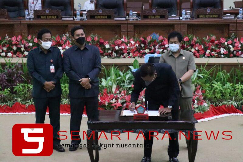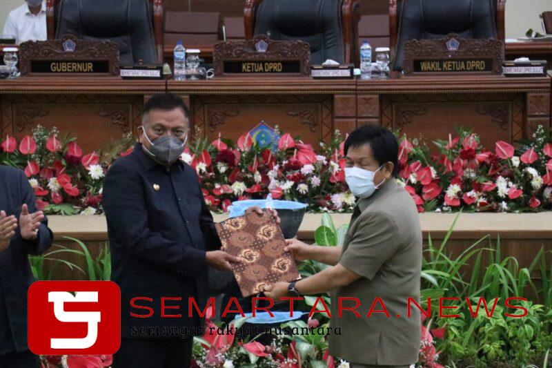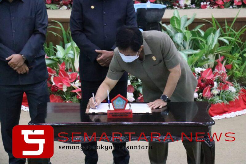 Paripurna penetapan perda provinsi pertanggungjawaban pelaksanaan APBD tahun anggaran 2020, ditutup dengan penandatanganan dan penyerahan dokumen oleh ketua DPRD Sulut, Andi Silangen ke Gubernur Sulut, Olly Dondokambey.