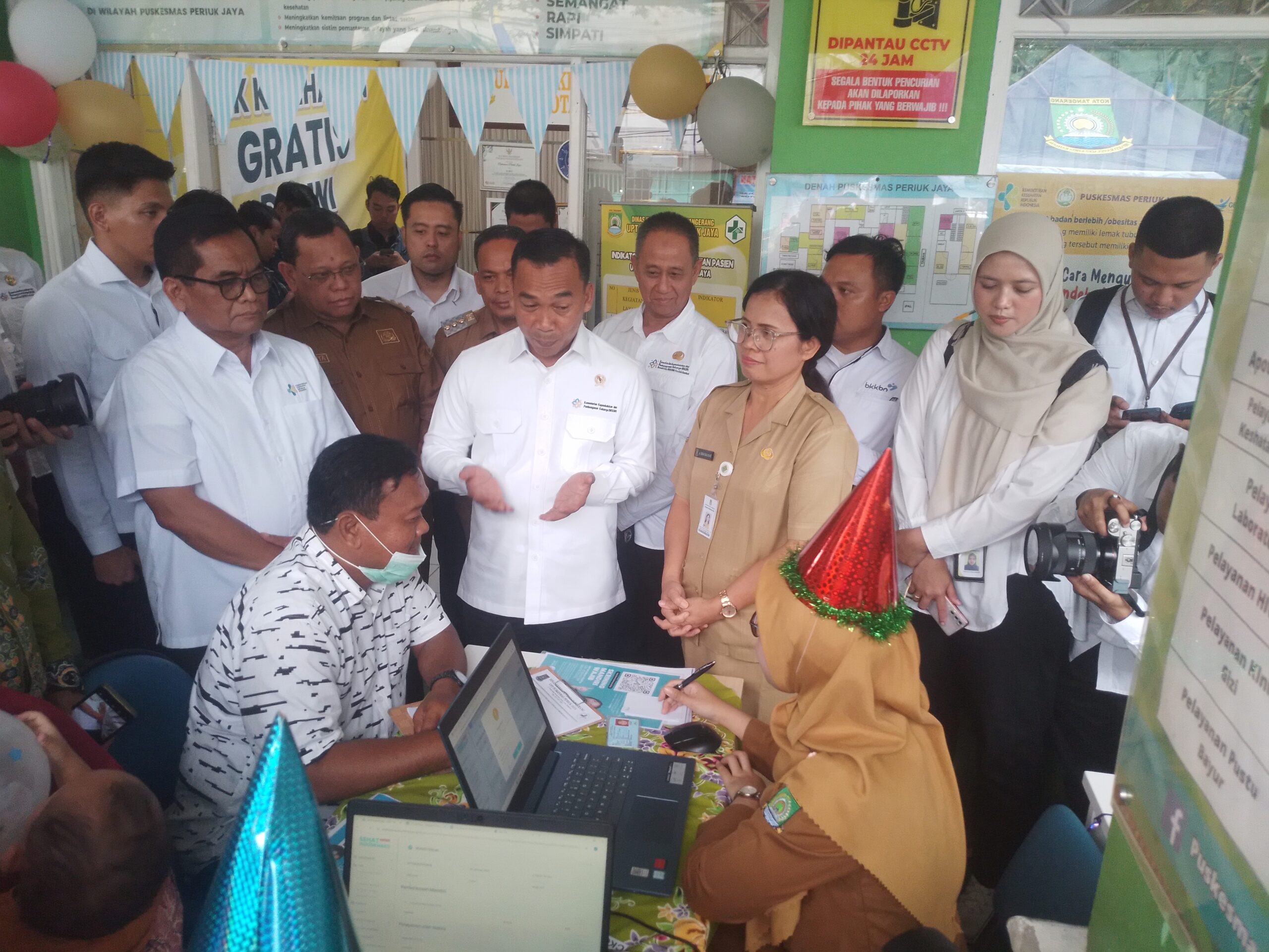 Menteri Kependudukan dan Pembangunan Keluarga, Wihaji saat memantau program CKG di Puskesmas Priuk Jaya, Kota Tangerang, Banten. (Foto: Kahfi/Semartara.news)
