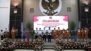Manado, Semartara,News – Gubernur Sulawesi Utara Olly Dondokambey melantik jajaran Badan Kerjasama Organisasi Wanita (BKOW) Provinsi Sulut periode 2021-2024 di Aula Mapalus Kantor Gubernur, Rabu (21/4/2021).