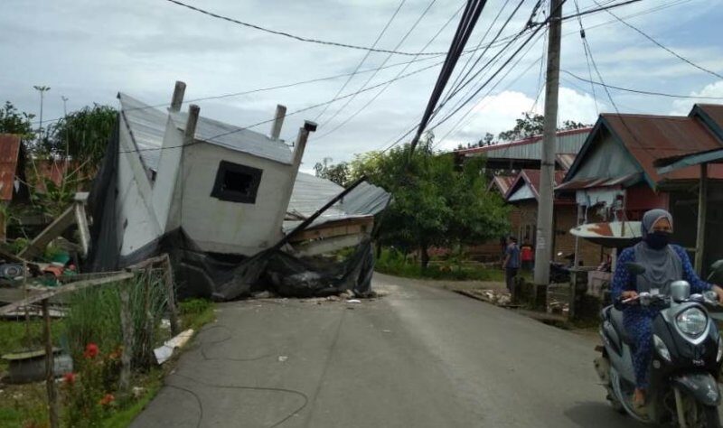 Begitupun dengan bangunan sarang walet di kawasan Simboro yang ambruk pada Jumat sore, reruntuhan bangunan terlihat menutupi sebagian badan jalan.