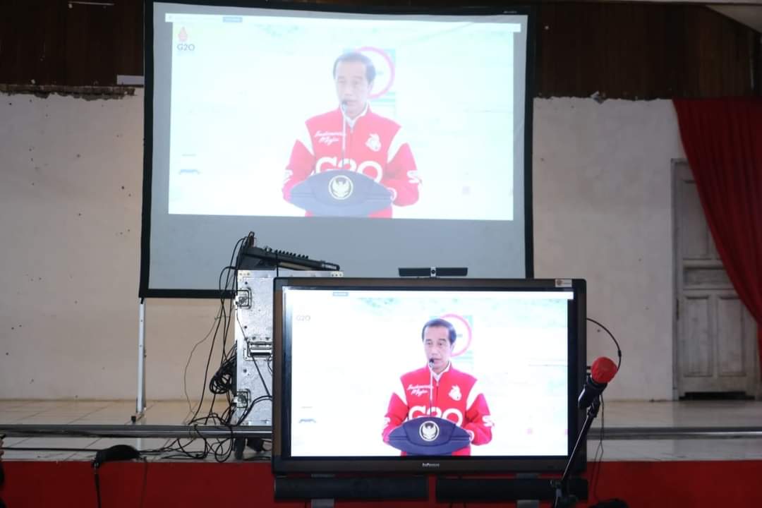 Presiden Jokowi yang di damping Gubernur Sulawesi Utara (Sulut), Olly Dondokambey melakukan peninjauan vaksinasi melalui video conference langsung dari Terminal Petikemas, Kota Bitung.