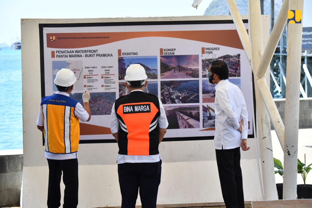 “Pelabuhan peti kemas lama akan kita rombak dan dipindahkan ke pelabuhan baru di Wae Kelambu. Kita harap Penataan Kawasan Waterfront Pantai Marina – Bukit Pramuka Zona 5 (serta zona 1, 2 dan 3 yang merupakan Pelabuhan lama) dapat selesai pada akhir 2021,” ujar Jokowi.
