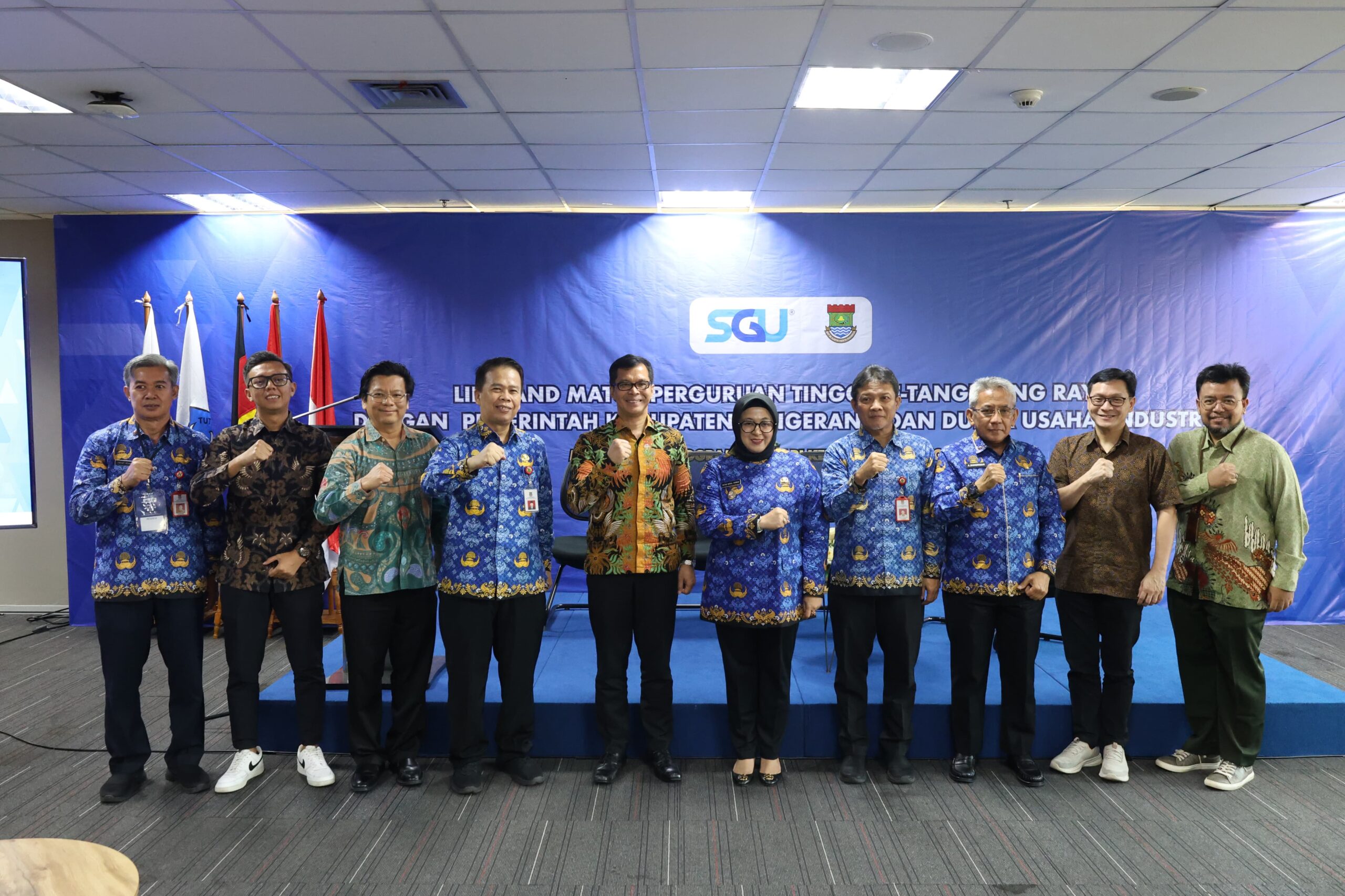 Wabup Tangerang Intan Nurul Hikmah berfoto bersama pimpinan SGU, perwakilan kampus, dan industri usai pembukaan Forum Link and Match di Alam Sutera. (Foto: Ist)