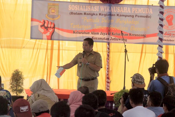 Wali Kota Tangerang AriefR Wismansyah saat memberikan motivasi dalam acara pelatihan kewirausahaan.